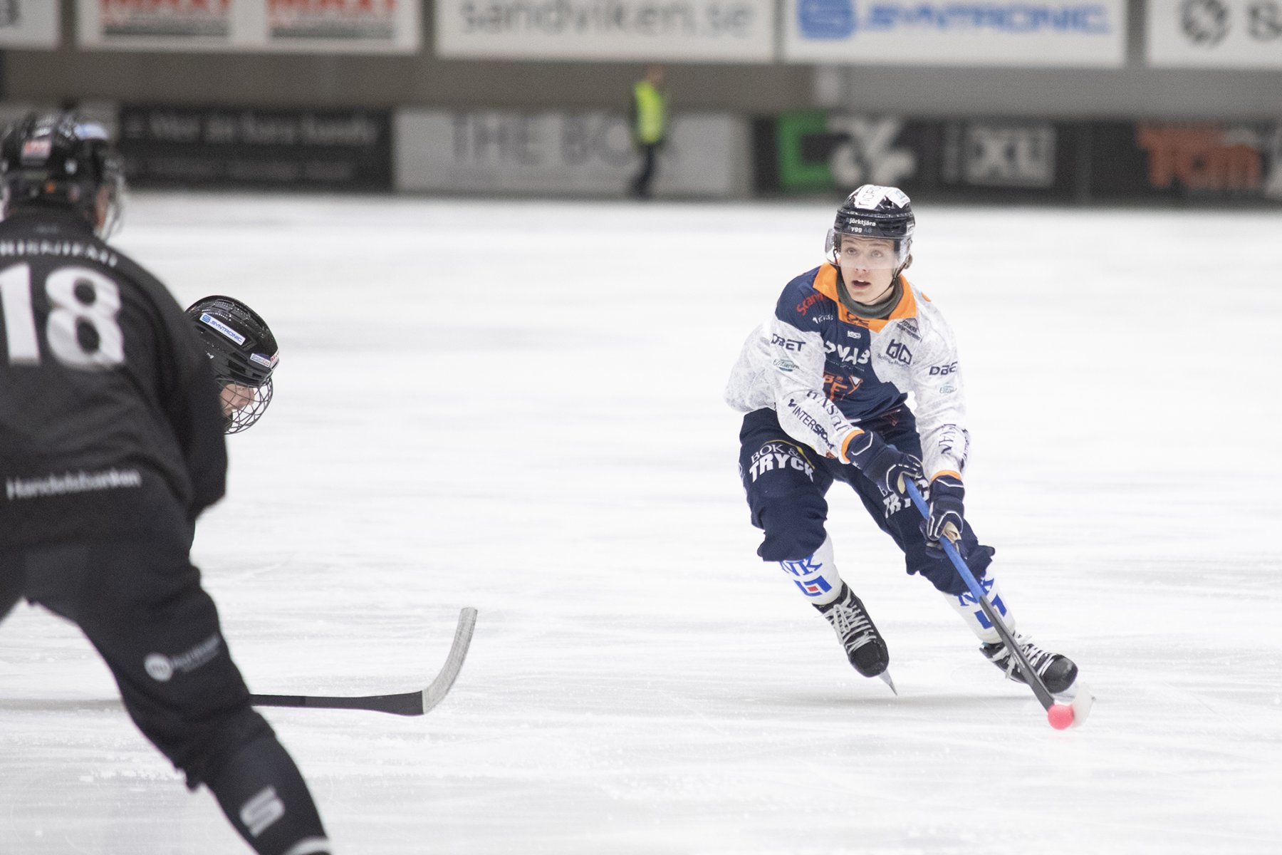 Det var skönt att se ett fokuserat och tydligt giffarna ta tag i matchen idag. Det blåste rejält men förutsättningarna var i övrigt okej. Det gick alltså att spela bandy länge i halvlekarna. Redan efter dryga minuten styrde Anton Dahlberg in ett inspel från Kasper Sandgren till 0-1. Bollnäs fortsatte att driva spelet och i minut 11 kommer ett superbt lyft från Joel Wigren som plockas ner, lika superbt, av Denis Sadakov. Denis gör inget misstag och vi har 0-2 på resultattavlan. Frillesås är inte alls dåligt utan kommer upp i sporadiska anfall och skapar en del chanser. Dock så skapar Bollnäs betydligt mer. I minut 30 får vi så ytterligare utdelning då Erik Pettersson sätter en hörna till 0-3 och en liten stund senare så kommer Kasper Sandgren med fart och laddar bössan. Han hinner få träff innan han faller på rumpan och skottet letar sig in till 0-4. Ledningen är helt välförtjänst och skulle kunna vara större. Frillesås tar timeout och samlar kraft till en reducering ett par minuter innan pausvilan då Linus Jönsson reducerar till 1-4 efter ett fint anfall. Tydlig ledning i paus men undertecknad är inte alls lugn. Erfarenheten säger att Frillesås aldrig ger sig. De känner varenda yta på isrektangeln och brukar ha ett och annat verktyg att plocka fram. Vi minns också att Edsbyn hade full huggning för nån vecka sedan, trots fyramålsledning i första halvlek, men lyckades med nöd och näppe hålla undan till en uddamålsseger.