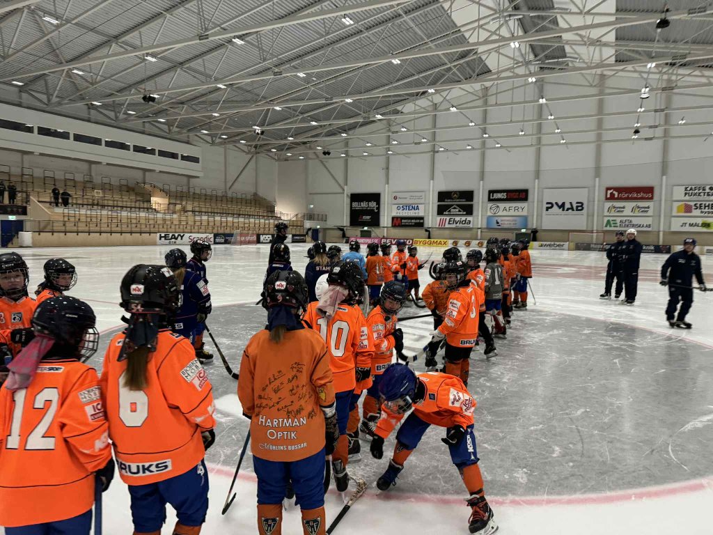 Efteråt delades ungdomarna in i grupper där A-lagsspelarna visade varsin favoritövning från tiden då de själva var i samma ålder. Övningar som barnen sedan fick testa – tillsammans med sina förebilder 🏑✨ Därefter bildade ungdomarna lång kö för att få autografer!